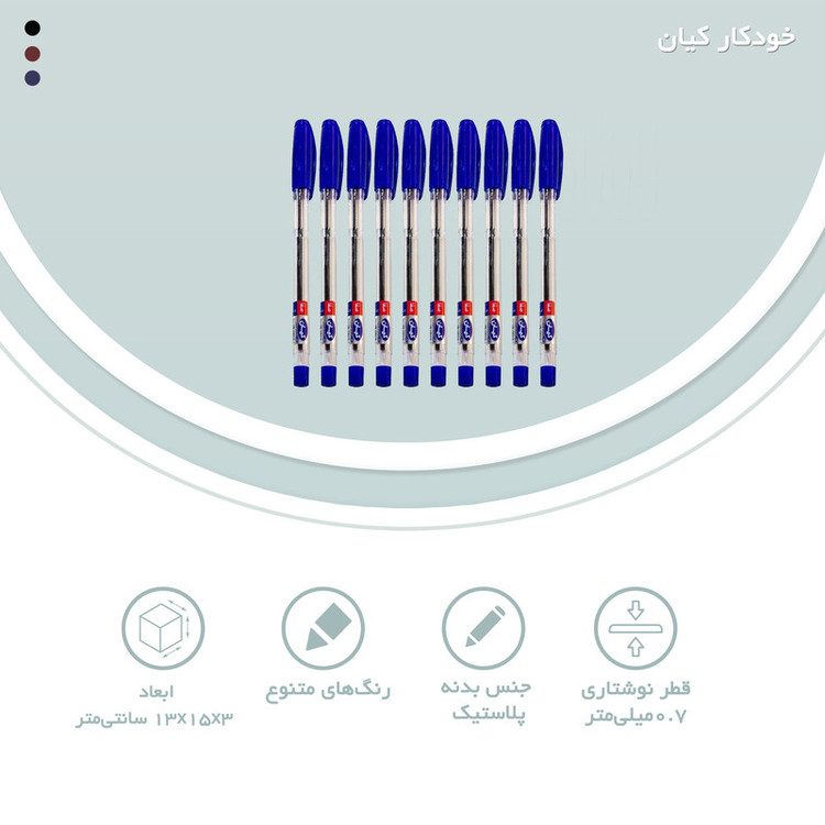 - بسته شامل 10 عدد خودکار نوک 0.7 میل - OBG) Oil Base Gel) جوهر نسل سوم خودکارها - نوشتاری تمیز در عین روان بودن و راحتی - بدون ریزش جوهر هنگام مصرف - همخوانی مناسب با نگارش فارسی - از لحاظ اقلیمی مناسب با آب و هوای متنوع ایران