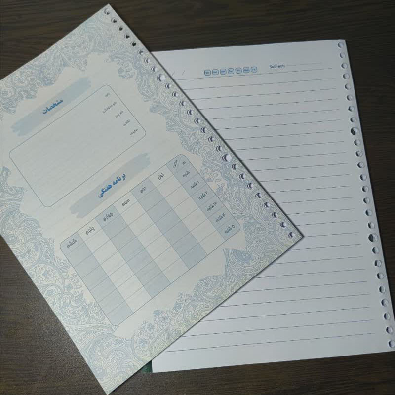 نوع کاغذ : کاغذ کلاسوری